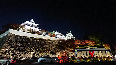 先日、所用で広島県の福山市に行きました。福山駅に降り立つとすぐ隣に福山城があり、きれいにライトアップされていました。普通、お城は天守台の周りに二の丸とか三の丸とかがあって、それも込みでお城になっていると思うのですが、福山城もそうだとすると駅は城の中に作られたということになりますね。なにしろ新幹線の高架ホームから目線の高さですぐ隣に天守閣が見えるほど至近ですから。