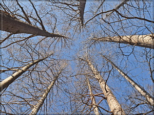 メタセコイアの樹林の中に入って見上げると…。よくこれだけ太く重たいものがバランスを保ってまっすぐ立っているものだと感心しました。