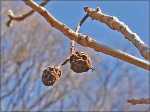 果実の干からびたやつが枝先に残っていました。さすがにこの状態ではオニグルミとの比較のしようがありません。