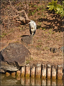 池の向こう岸でアオサギが日向ぼっこをしていました。「ああ…、ヒマ」と言っているようでした。親近感を覚えます。(後編へ続く)