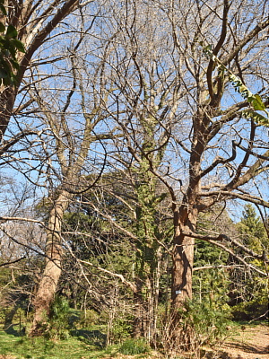 逆さ箒スタイルの樹木。ケヤキかなと思いましたが、よく見ると枝の伸び方が違います(ケヤキはまさに箒のよう)。これはエンジュだそうです。こんなに大きくなるんですね。中国原産ですがなぜか親しみ深い気がするのは、各地で公園木や街路樹として植えられているからでしょう。