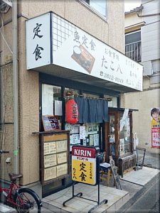 さて、どんな所かを確認したところで肝心の野山歩きです。都営三田線の白山駅で下車して地上に出ると、そこは旧谷田川が削った谷(といっても賑やかな商業地ですが)。そこから西に向かって本郷台を越え、植物園正門のある反対側の旧谷端川の谷筋に向かいます。途中、丘の上によさげな定食屋さんを見つけたので、帰りに寄ってみようと心に決めました。