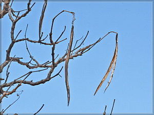 これがオオアメリカキササゲの果実。既に鞘は裂けて中の豆果は落ちてしまっていますが、確かにインゲンマメや小豆みたいですね。