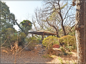 上の段に上がると東屋がありました。木立でさっきのような眺望が得られていないのが残念。