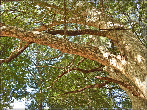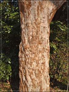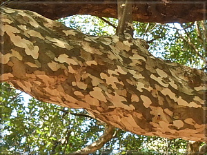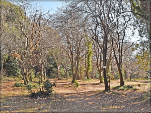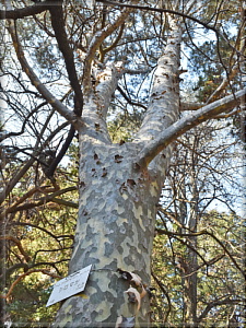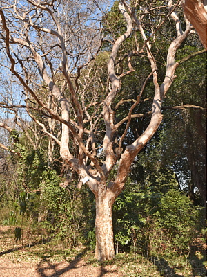 カリンの林です。カリンの樹皮もシロマツに似て斑模様です。ただ、カリンはバラ科、シロマツはマツ科ですが。