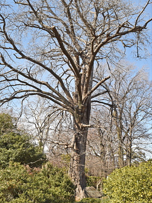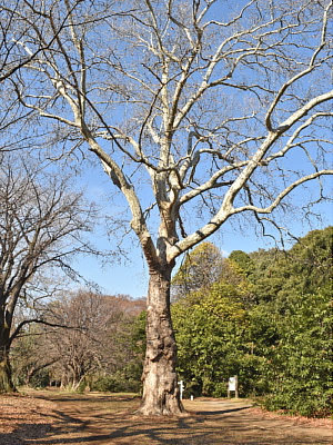 モミジバスズカケノキの巨木。丸裸ですね。プラタナスの仲間で、本来ならグローブほどの大きな葉が木の下一面に散らばっているはずですが、奇麗に掃除されていて、落ち葉はまったくありませんでした。そういえばこの木に限らず園内には落ち葉はほぼゼロ。自然観察をする上では落ち葉も重要な観察の対象で、公園によってはあえて落ち葉掃除はしないところもありますが、ここの施設は設置の趣旨が異なるのでしょう。さっきのカリンの実も然りです。