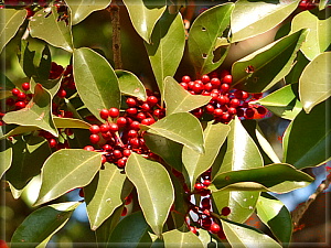 クロガネモチは漢字では「黒鉄糯」。樹皮から鳥糯が採れ、若い枝が紫色を帯び全体として黒鉄色に見えるということだそうです。ところで「鳥糯」って何のことだか知らない人も多いでしょうね。かくいうyamanekoも使ったことはありませんが。