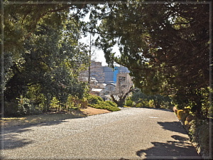 本館の前を通り過ぎ坂道を下っていきます。下りきると正面入口です。