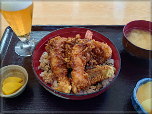地下鉄に戻る途中、往きに気になっていた定食屋さんに入って昼食をとりました。入口の外側のガラスだけでなく店内の壁という壁に大量のお品書きが貼ってあり、その情報量の多さに思考が止まってしまいました。かろうじて天丼とビールを注文し、あらためて席に着き落ち着いて水を飲みました。味は「こういう店が家の近くにあればなあ」と声に出して言いそうになるレベル。この辺りに住んでいる人や勤めている人が羨ましいです。