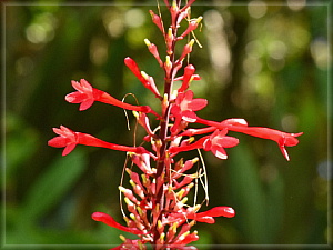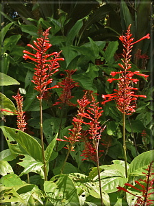 ベニツツバナ。中南米原産で、もともとは庭木や公園樹として植栽されていたものだそうですが、ほぼ野生化して林縁で群生を作っていました。こんな花が普通に道ばたにあるなんて、南国っていいですね。