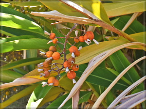 館内の展示を見学しながら体が芯まで冷えたところで博物館を出ました。玄関前に植栽されていたのはゲットウ。漢字では「月桃」と書きます。なんかロマンチックな名前ですね。本来の茎は地下にあり(地下茎)、横に這った地下茎からあちこちで偽茎を立ち上げるスタイル。その先に花序を付けます。写真のとおり今はもう果実の時期です。