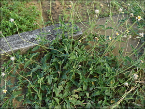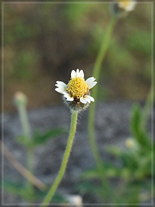 花冠だけ見たら間違いなくハキダメギクですが、なにしろ花茎がひょろひょろと長く、50cmくらいありました。これは熱帯アメリカ原産のコトブキギクだそうです。図鑑によると南関東の沿岸部でも見られるとのことですが、出会った記憶はありません。たぶん。