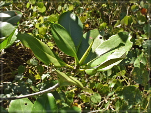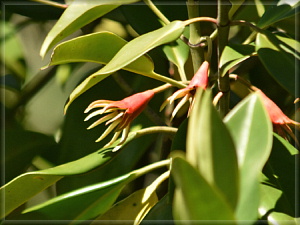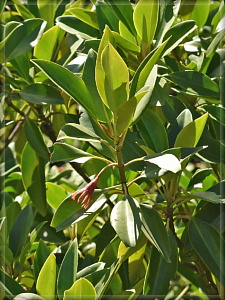 これはオヒルギの葉です。赤い萼筒も見えますね。