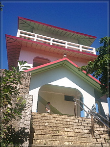 集落のはずれにある竜宮城展望台に上って眺望を堪能。海と空が嘘みたいに青いです。
