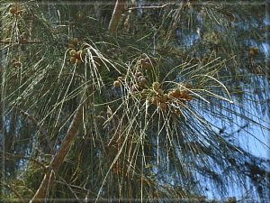 どうみてもマツですが、立派な?被子植物。トクサバモクマオウです。松葉のように見える部分は、なんと枝(葉状枝)なのだそう。その細い1本の枝に、シダ植物のトクサにあるような袴状の葉(土筆(つくし)の袴と同様のもの)が輪生しているのだそうです。だから「トクサ葉」なんですね。また、花はこの枝の先端に付きます。花被はないとのこと。いずれも観察にはルーペが必要です。