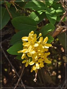 これはクロヨナの花序。マメ科に特徴の蝶形花です。全体に傷んで薄汚れたものが多かったですが、その中で写真のものは本来の姿をとどめている感じでした。樹高は5mほど。本来もっと大きくなるようです。民家の近くだったので剪定されていたのかもしれません。