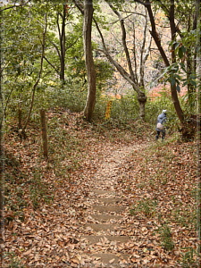 10時50分に京王相模原線の京王稲田堤駅をスタート。住宅地を抜けて小沢城址緑地の山道を歩き、12時に城跡に到着。そこから麓の菅仙谷地区に下るところまで来ています。時刻は12時20分です。