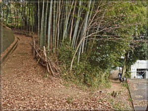 何気ない竹林ですが、きちんと手入れされていてこその美しさですね。ところでこの道をお出かけ帰りと見られる女性や学生っぽい人と何人かすれ違いましたが、これはさっきの丘の上の住宅地に住む方などが小田急線の読売ランド前駅との間の生活道路として使っているのではないでしょうか。だとしてもこの道は夕方や夜間は怖くて無理ですね。