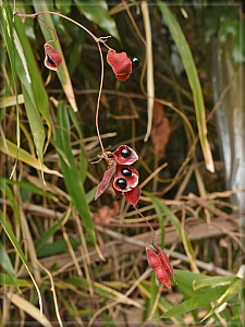 おっ、これはトキリマメの実です。赤い鞘に光沢のある黒い実。鳥たちへのアピールですかね。