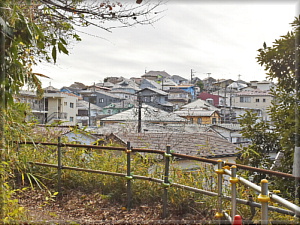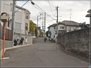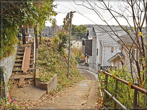 里山を下りてすぐ、目の前の斜面に広がる住宅地を上っていきます。帰宅中と思われる人が歩いて上っていましたが、この辺りはバスも走っていないようなので、いったいどこから歩いているのかと思いました。駅からだとすると結構ありますが。