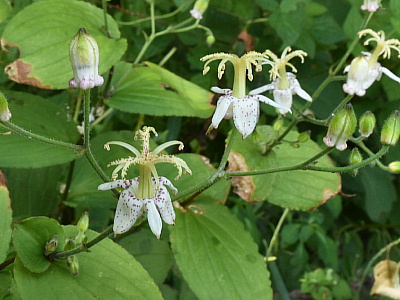 野草見本園のヤマホトトギス。見慣れた花ですが、よく考えるとかなり突飛な姿をしていますね。虫へのアピールでしょうね。