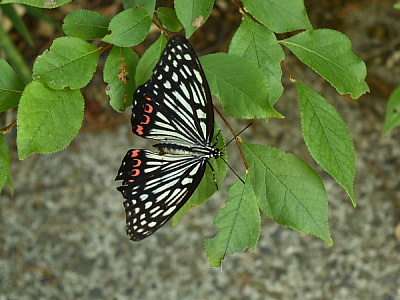 外来種のアカボシゴマダラです。30年前に埼玉県の秋ヶ瀬公園で発見され、その後南関東の各地で見られるようになったそう。現在も関西や東北地方に分布域が拡大中だそうです。在来生態系の保護のため駆除の対象となっています。人為的に放蝶されたものが広がった、または、各地で放蝶された、というのが定説のようです。