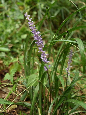 鮎道沿いにはツリガネニンジンの保護エリアがありますが、同じような環境を好むツルボも多数生えていて、むしろこちらが優勢になってきています。ツルボは別名をサンダイガサ(参内傘)といい、これは公家が参内する際に従者が後ろから差し掛ける傘をつぼめた姿に似ているからだそうです。ふーん。ただ、標準和名であるツルボの由来は不明なのだそう。