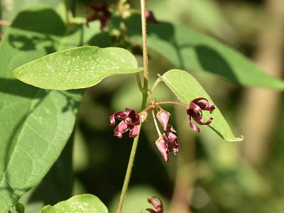 コバノカモメヅル。水不足なのか、それともこれから開くところなのか、花冠の裂片が丸まっていますね。中央に蕾が見えているので、後者なのかもしれません。本来は星型に開きます。今年保護した場所では他の植物に負けてほとんど開花していませんが、ここ野草見本園のものはかろうじて育っているようです。