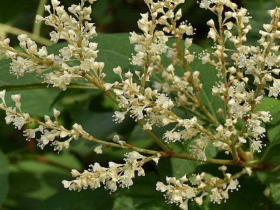 普段あまりじっくりと見ることのないイタドリの花。ごく小さく5mmほどの大きさです。雌雄異株で、これは雄花。雄しべが多数(通常8個)あることが分かります。雌しべもあることはあるのですが、小さくて本来の機能は備えていないそうです。