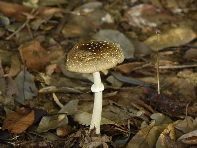 数日前に雨が降ったので公園内のあちこちにキノコが顔を出していました。これはテングタケ? 似たものにテングタケダマシとかテングタケモドキとかイボテングタケとかあるようで、yamanekoのような素人には判別不能です。