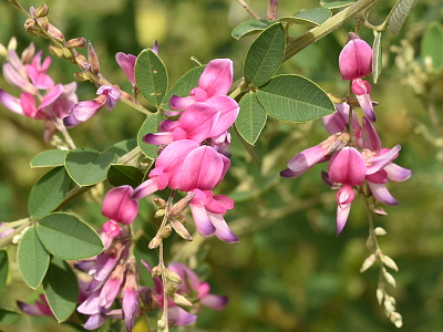 ヤマハギ。最もポピュラーな萩で、秋の七草の萩はこれかもしれません。この公園には秋の七草のうち、萩、尾花(ススキ)、葛、女郎花(オミナエシ)、桔梗(キキョウ)は生えていますが、撫子(ナデシコ)と藤袴(フジバカマ)は自生では見たことがありません。