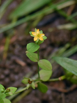イボクサと同じような環境に生えるコケオトギリ。休耕田などで時々見かけます。コケオトギリは(よく似るヒメオトギリも)他のオトギリソウ属とは違って葉に黒点が全くないのだそうです。一方、陽に透かすと明点があるのが分かるそうですが、いずれにしても葉自体がごく小さいので、老眼のyamanekoには判別できません。