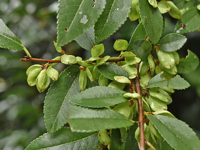 これはアキニレの若い果実。2枚の果皮に挟まれて種子がある真ん中の部分がぷくっと膨らんでいます。生八ツ橋みたいです。