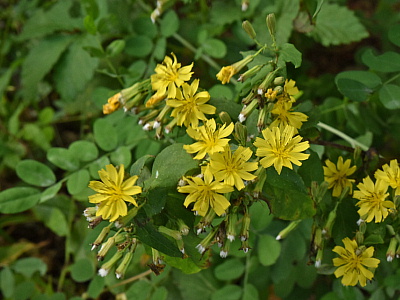 ヤクシソウ。漢字では「薬師草」と書きます。その謂れは不明とするものもありますが、普通に考えたら薬効があるからじゃないかと。実際に皮膚の腫物の民間薬として使われていたそうです。ちなみに薬師といえば薬師如来。他の如来(釈迦、大日、阿弥陀)の名前を持つ植物はあるかと調べてみましたが、少なくとも標準和名としてその言葉を冠している植物はありませんでした。