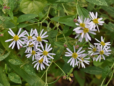 シロヨメナ。白菊としては最もポピュラーな野菊ですが、イナカギクと生えている場所も含めてよく似ているので、葉の形や総苞(頭花の付け根部分)の様子を確かめてみる必要があります。