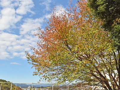 秋晴れをバックにした桜の紅葉。清々しいです。