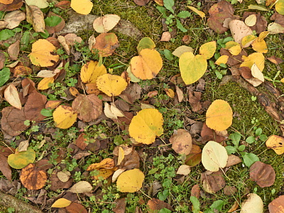 尾根道から里山広場に下りていくと甘い香りが漂っていました。カツラの落ち葉から放たれる香りです。カツラと言えば葉はハート形ですが、落ち葉を見るとそうでないものも多いようです。