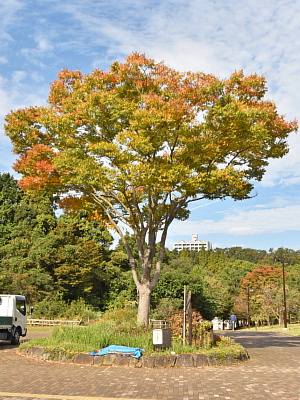 小山内裏公園の正面入口にあるシンボルツリー。ケヤキです。今年も紅葉が始まりました。もう少し葉の量が減ってくるとより風情が増します。