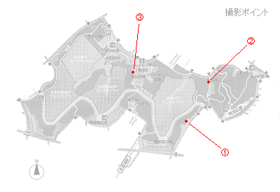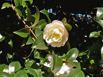 尾根道沿いにはサザンカも多く植栽されています。散る際には花弁がバラバラに落ちるので、株の下は花弁の絨毯ができます。