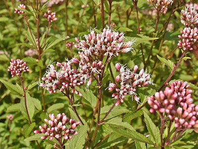 今や野生ではほとんど見ることのなくなったフジバカマ。葉を摘んだ後、生乾きのときには桜餅の匂いがするそうです。感じたことはありませんが。桜餅に用いられるのはオオシマザクラの葉で、それと同じクマリンという香り成分を持っているようです。