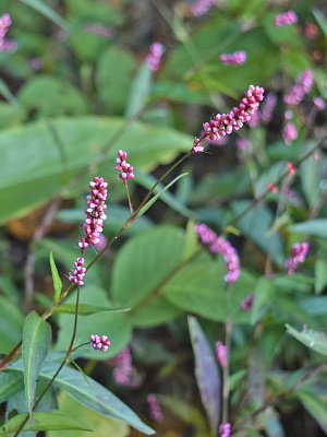 この時期、野辺で地味に咲き誇っているイヌタデ。花の後も赤い花被は残って果実を包むのだそうです。大事な果実を守っているんですね。小さくてよく見えにくいですが。