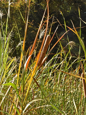 調整池のヒメガマ。このガマの穂も果実の集合体ですね。