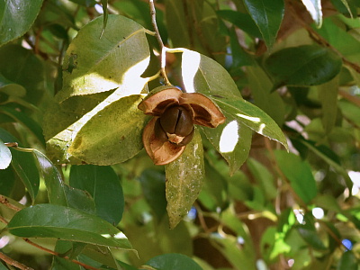 ヤブツバキの実が開裂し、種子が露わになっていました。いわゆる果肉の部分は分厚いですが、木質で硬く、鳥も食べません。