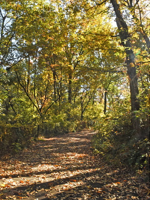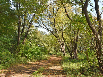 園東側の散策路。夏場は蚊の巣窟ですが、この時期は歩いていて気持ちいいです。