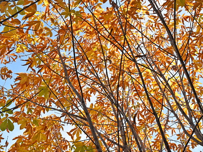 北側の園路。見上げるとトチノキの黄葉が始まっていました。今年は秋が短いとか言っていましたが、なんだかんんだでもう11月。晩秋に近づいているわけです。