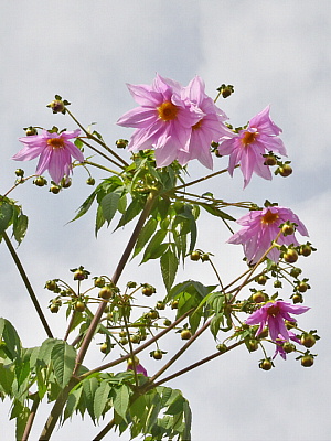今年もコダチダリアが開花しました。皇帝ダリアの名前の方がポピュラーかもしれません。草本ですが高さは3m以上にもなります。
