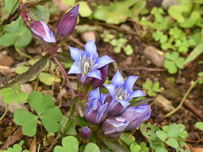 野草見本園へ。リンドウが咲いていました。朝方には筆の穂先のように閉じていましたが、陽が当たると開いてくれます。もう晩秋ですね。