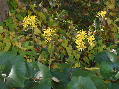 この時期、一番生き生きしているのがツワブキです。「私の出番がやって来た!」と言わんばかりに咲き誇っていました。