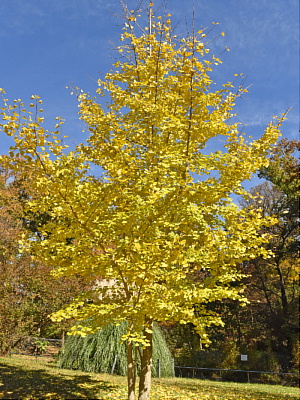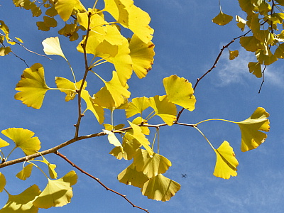 南広場のイチョウ。10年くらい前に植栽されたもので、ずいぶんと大きくなりました。ちなみにこの株は雄なので銀杏は成りません。
