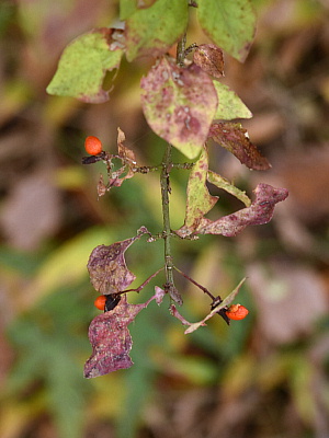 今日は実の写真ばかり。サルトリイバラも豊かに実を付けていました。クリスマスカラーで、華やかです。